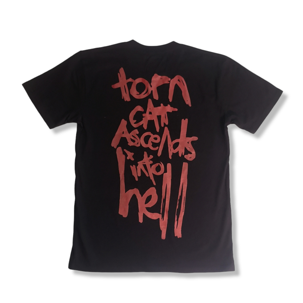This torn cat is ascending into hell and you can follow him now using this beautiful shirt for men and women.