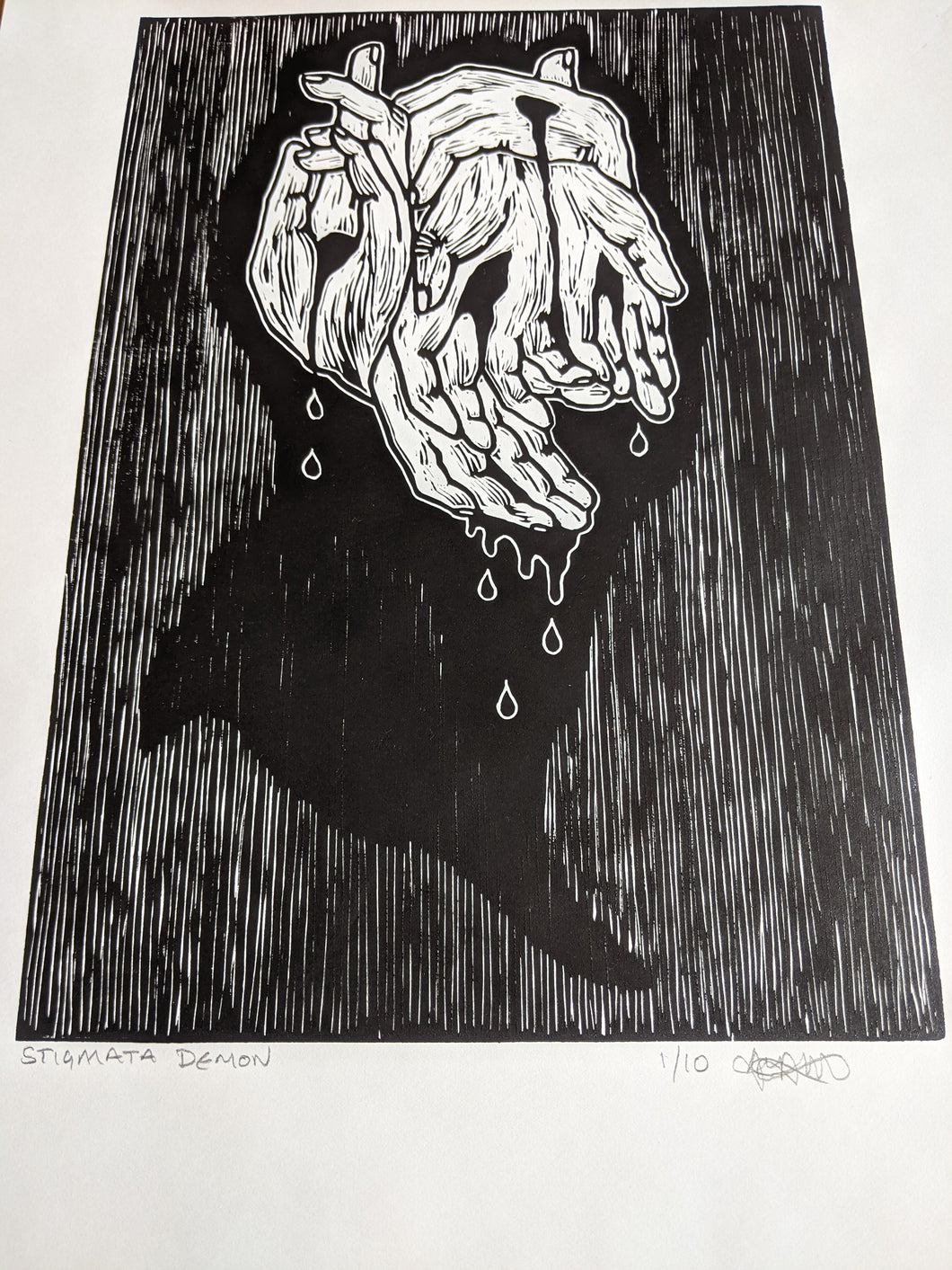 Printed with the original lino-block used for the album cover. Printed with Caligo Safewash ink on Fabriano 90gsm paper.
